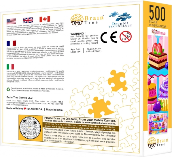 Puzzle-ul În Cofetărie de la Brain Tree oferă o experiență unică datorită pieselor tăiate aleatoriu, care adaugă un plus de aventură asamblării. Fiecare piesă este originală, ceea ce garantează distracție la fiecare potrivire. Finisajul mat permite o redare frumoasă chiar și în condiții de iluminare schimbătoare.