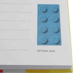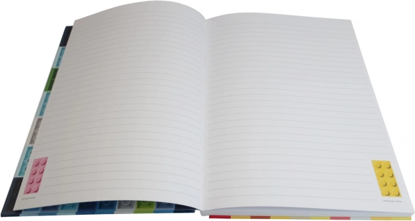 Caiet de notițe elegant LEGO în format practic A5 oferă 144 de pagini dictando cu motive din catalogul original de culori LEGO. Coperți rigide din carton reciclat cu certificare FSC cu embosare cu cărămizi, astfel încât recunoști caietul și la atingere. Ideal pentru notițe zilnice, planificare și idei creative.