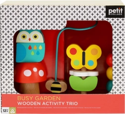 Petit Collage labirint motric Grădina Activitate Trio este o jucărie din lemn frumos lucrată, care oferă un trio de activități diferite. Copiii se pot bucura de așezarea, deplasarea și rotirea figurinelor animale și a altor piese ale acestei jucării. Designul său simplu, dar atractiv, susține dezvoltarea abilităților cognitive și a imaginației copiilor.