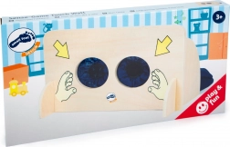 Peretele tactil Small Foot Sense-Game oferă copiilor o modalitate sigură și distractivă de a exersa percepția senzorială. În spatele peretelui din lemn se află un săculeț textil cu fermoar, în care pot fi introduse ușor diverse obiecte. Copiii își introduc mâinile în mânecile textile moi și ghicesc doar prin pipăit ce țin în mână.