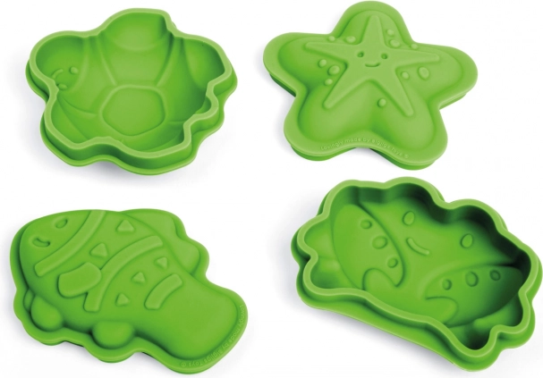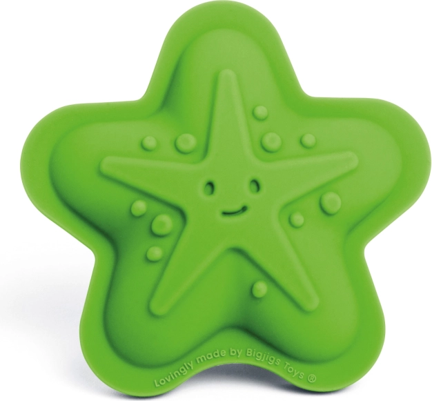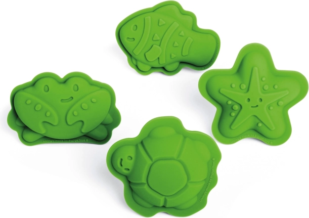 Descoperă setul jucăuș de patru forme din 100% silicon în nuanța verde Meadow de la BIGJIGS TOYS. Copiii pot crea minunate creații din nisip cu motive din lumea marină – stea de mare, crab, pește și țestoasă. Formele sunt rezistente la temperaturi și pete, plăcut moi și sigure pentru mâinile mici. După joacă, le depozitezi ușor în săculețul de bumbac inclus.