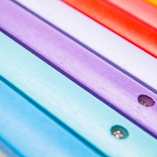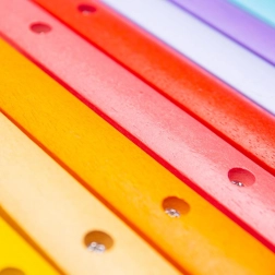 Șuruburile de siguranță asigură o fixare solidă a clapelor, protejând copiii în timpul utilizării. Acest xilofon este ideal pentru dezvoltarea coordonării și percepției culorilor.