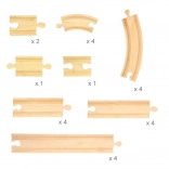 Setul include 24 de piese care pot fi combinate în mod variat pentru a crea configurații diverse ale traseului de trenuleț.