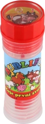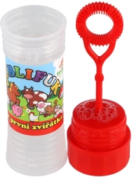 Baloanele de săpun cu motivul Animăluțele mele prime vor bucura orice copil. Conțin 50 ml de lichid pentru bule, în capac este integrat un joc, iar suflătorul este parte a capacului. Ideal pentru petreceri, joacă în aer liber și mici recompense. Potrivit de la 6 ani.