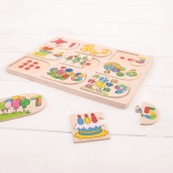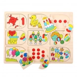 Cei mici și curioși vor iubi cu siguranță acest puzzle mic, interesant și isteț. Nu doar că se vor distra potrivind piesele în locurile corecte, dar pot introduce mai întâi doar imaginile și apoi să asocieze numerele potrivite. Fiecare piesă a puzzle-ului din lemn este dimensionată pentru a ușura ridicarea și prinderea cu mânuța copilului. Puzzle-urile sunt imprimate cu imagini sau culori care sprijină procesul de învățare și adaugă valoare educațională. O modalitate grozavă de a dezvolta dexteritatea, recunoașterea formelor, concentrarea și număratul încă de la vârste fragede. Principalele caracteristici: realizat din materiale de înaltă calitate, provenite din surse responsabile; respectă normele europene actuale de siguranță.