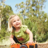 Este echipat cu anvelope robuste, care permit o deplasare lină pe diverse suprafețe. Remorca din spate detașabilă este ideală pentru transportul produselor de fermă, extinzând posibilitățile de joc. Designul original și absența axelor metalice asigură siguranță maximă pentru copiii dvs.