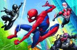 Ilustrațiile vii și dinamice ale lui Spider-Man și prietenilor săi aduc energie și entuziasm jocului.