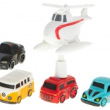 - Accesorii bogate: mașină de poliție, mașină de pompieri, autobuz școlar, autoturism și elicopter