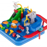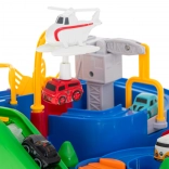Pornește într-o cursă palpitantă plină de surprize. Pista interactivă cu obstacole, pod mobil și angrenaje pune la încercare îndemânarea și gândirea logică a copiilor. Controlul este ușor și distractiv – cu ajutorul butoanelor și elementelor rotative deplasezi mașinile pe traseu și îndeplinești misiunile echipelor de salvare.