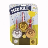 Medalii pentru micii învingători! Acest set de trei medalii din plastic cu șnur este ideal pentru copiii care participă la diverse competiții și așteaptă cu nerăbdare o recompensă pentru eforturile lor.