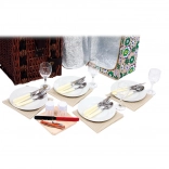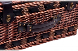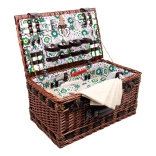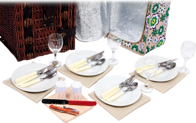 Coșul conține tot ce este necesar pentru un picnic cu familia sau prietenii: farfurii, tacâmuri, pahare de vin, cuțit, piperieră, solniță și șervețele.