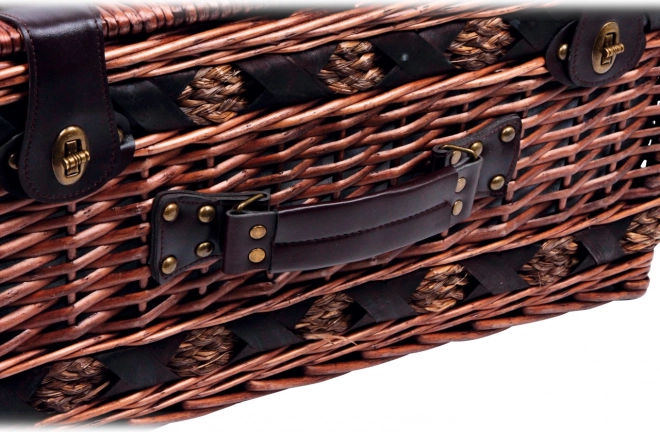 Coșul de picnic Deluxe este alegerea ideală pentru cei care apreciază nu doar funcționalitatea, ci și estetica. Acest coș este complet echipat cu tot ce este necesar pentru patru persoane, inclusiv farfurii, tacâmuri, pahare de vin, cuțit, piperieră și solniță. Designul prezentat combină farmecul rustic cu practicitatea modernă.