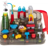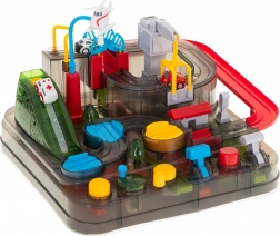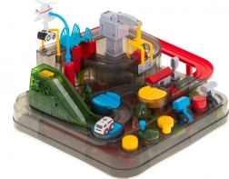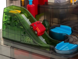 Descoperă aventuri palpitante cu pista multifuncțională plină de obstacole. Folosește butoane și comenzi pentru a se asigura că vehiculele de serviciu ajung la timp la destinație. Lăsați-vă captivați de efectele uimitoare ale diodelor luminoase, care adaugă o atmosferă vibrantă în camera de joacă.