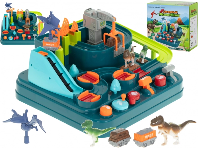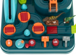 Acest joc de curse nebunești cu vagonul pe o cale ferată îngustă va fascina iubitorii de puzzle-uri și, bineînțeles, de dinozauri. Designul său se inspiră din filmele cu creaturi preistorice. Figurinele de dinozauri sunt detașabile și pot fi folosite separat sau pentru a crea noi obstacole pe traseu.