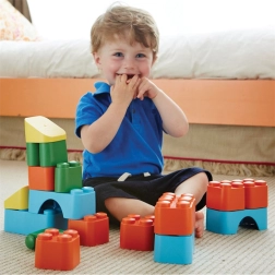 Descoperiți distracția și designul sustenabil într-un singur set. Cuburile Green Toys sunt ușoare, dar rezistente și durabile, fabricate în SUA din plastic reciclat provenit din sticle de lapte. Copiii pot construi castele, turnuri și propriile lor creații fantastice fără riscul pieselor mici sau al marginilor tăioase.