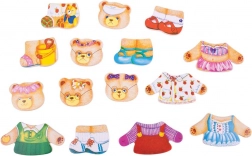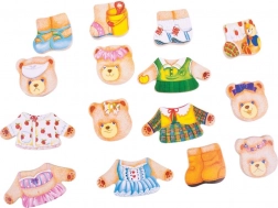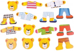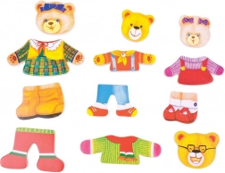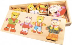 Îmbrăcați-l pe domnul Urs, doamna Ursoaică și cei doi ursuleți în cele mai diverse ținute și descoperiți emoțiile prin capetele interschimbabile cu expresii diferite. Piesele din lemn sunt plăcute la atingere, se asamblează ușor și susțin jocul creativ și învățarea prin joacă.
