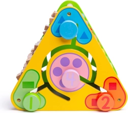 Acest triunghi activ de la BIGJIGS BABY combină educația și jocul într-un ansamblu compact și durabil. Datorită execuției solide, nicio piesă nu se pierde, iar copiii pot explora în siguranță culorile, formele, numerele și primele cuvinte în engleză. Designul plin de culoare atrage atenția și susține concentrarea.