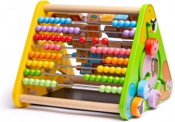 - 5 în 1: abac/numărătoare, tăbliță de desen, alfabet în engleză cu imagini, culori și numere, animăluțe