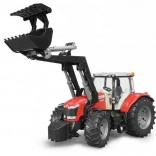 Tractorul Bruder Massey Ferguson 7624 cu încărcător frontal este o replică fidelă a unui utilaj agricol cunoscut. Acest model este fabricat din plastic ABS de înaltă calitate și policarbonat, asigurându-i longevitate și rezistență în timpul jocului. Caracteristici principale ale tractorului: