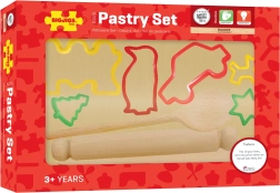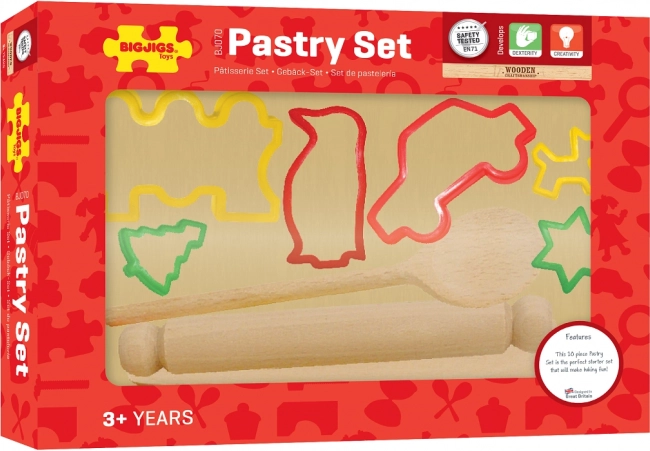Acest set de copt pentru copii cu forme de decupat BIGJIGS este un ajutor grozav pentru micii bucătari și cofetari. Datorită combinației dintre ustensilele din lemn și formele colorate de decupat, copiii învață bazele coacerii și își perfecționează motricitatea fină și coordonarea mână-ochi. Execuția de calitate și materialele sigure asigură joacă plăcută și fără griji.