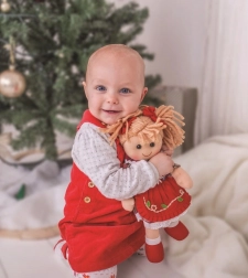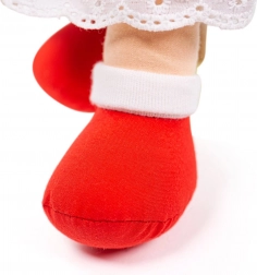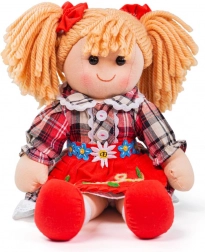 Păpușa textilă Mandie este o companioană plină de culoare și catifelată pentru cei mici. Țesăturile plăcute, firele fine din ață și zâmbetul adorabil invită la răsfăț și la joacă. Rochița stilată în carouri, cu broderie și dantelă, îi oferă păpușii un farmec tradițional îndrăgit de copii.