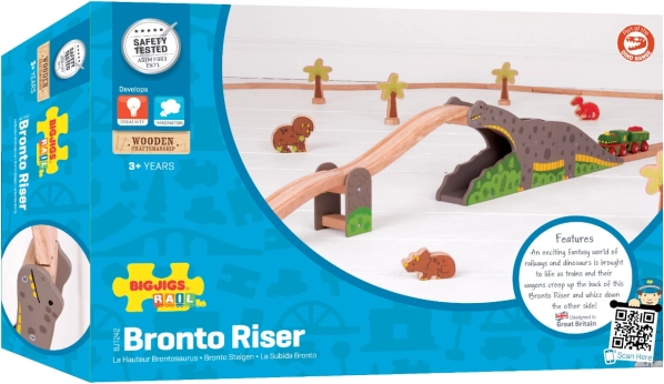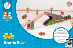 Descoperă distractivul pod cu dinozaur pentru piste de trenulețe din lemn, unde calea ferată se întâlnește cu aventura preistorică. Trenulețul trece peste spatele „brontozaurului” și pe sub el, adăugând jocului tensiune, imaginație și antrenând motricitatea fină. Compatibil cu majoritatea pistelor de trenulețe din lemn de pe piață.