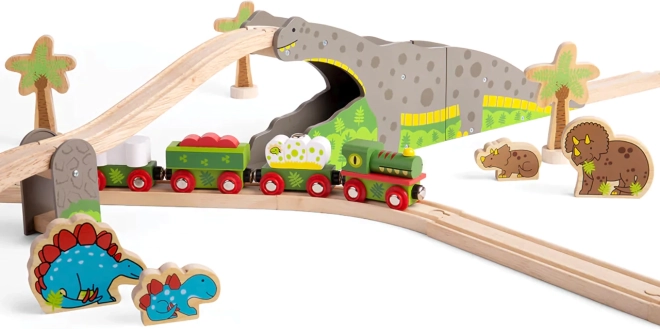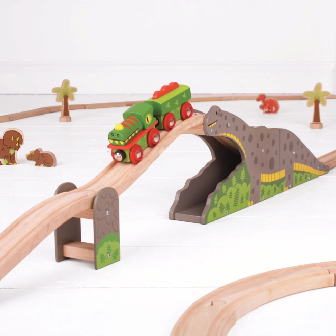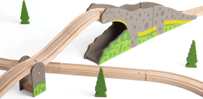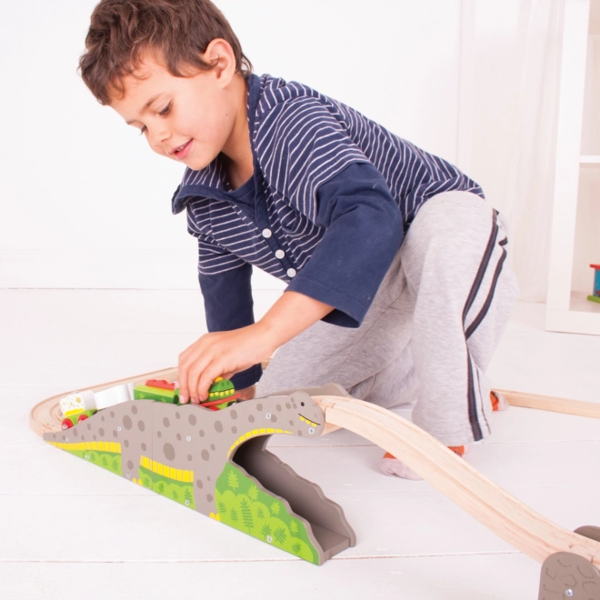 - Accesoriu pentru pistă din lemn – pod/tunel cu dinozaur