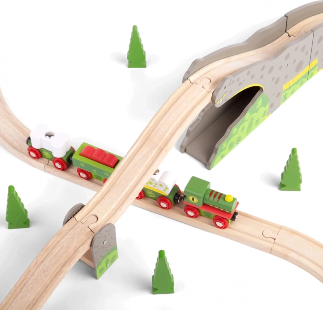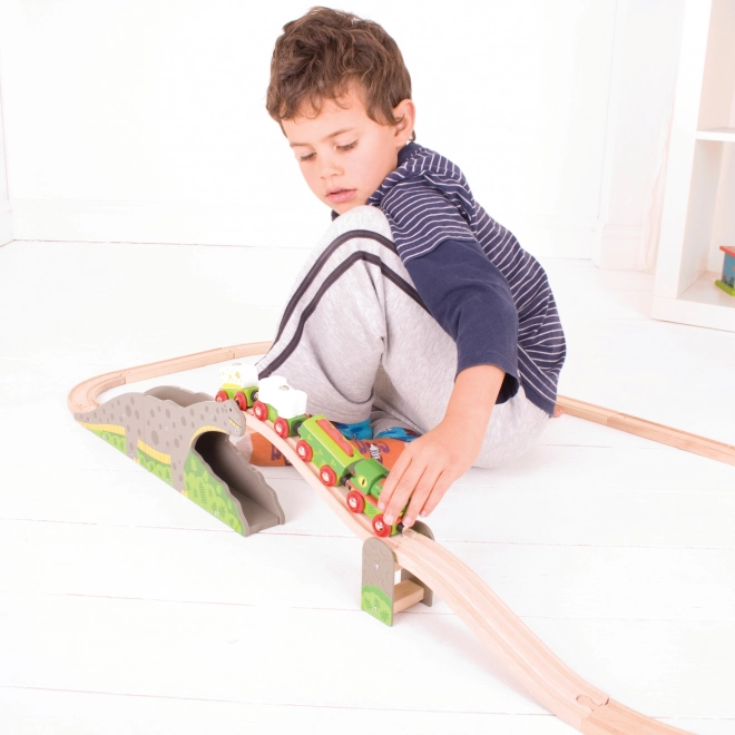 Oferă-le copiilor un element original pentru pista lor – podul cu dinozaur, care transformă fiecare cursă într-o aventură. Construcția robustă din lemn, cu motiv de dinozaur, permite garniturilor să treacă peste spate și prin tunel, sporind variabilitatea traseelor și susținând jocul creativ.