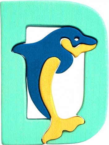 Această literă din lemn D, cu un delfin vesel, îi ajută pe copii să recunoască formele și literele în mod natural, prin joc. Piesele individuale se potrivesc exact la locul lor, astfel încât copiii învață concentrarea, răbdarea și coordonarea mână–ochi.