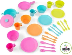 Setul de veselă pentru copii KIDKRAFT BRIGHT aduce celor mici o joacă realistă de gătit și servire la masă. Datorită celor 27 de piese, micii bucătari se vor bucura de multă distracție servind preparatele preferate. Plasticul durabil și sigur se întreține ușor și este potrivit pentru joaca de zi cu zi.