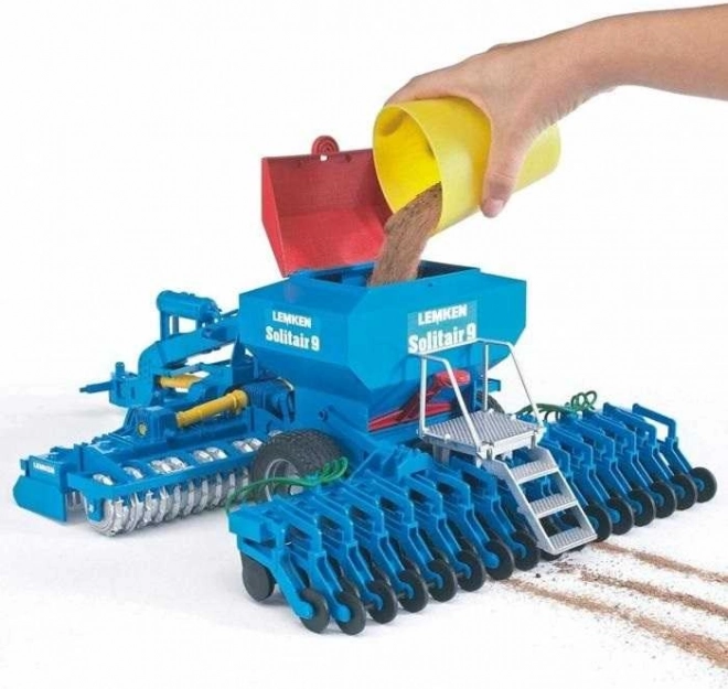 Model realist al mașinii de semănat LEMKEN Solitair 9 la scara 1:16 de la Bruder, cu numeroase detalii funcționale pentru un joc autentic. Dispune de rezervor pentru semințe ce poate fi umplut, braț și trepte rabatabile, discuri mobile și cuplă rotativă la 180°. Este compatibilă cu tractoarele Bruder seriile 20xx, 21xx și 30xx și este fabricată din plastic de calitate în Germania.