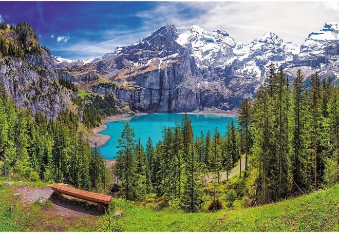 Puzzle-ul cu tema Lacul Oeschinen în Alpi oferă nu doar distracție, ci și ajută la relaxare și dezvoltarea concentrației. În timpul asamblării, exersați răbdarea, atenția și stimulați gândirea logică. Puzzle-ul este ideal pentru momente de relaxare cu familia și prietenii.