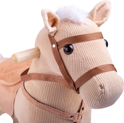 Calul balansoar bej este proiectat pentru a oferi copiilor o plimbare sigură și confortabilă. Șaua și căpăstrul moi, din catifea fină, invită la atingere, iar joaca dezvoltă nu doar imaginația, ci și abilitățile motorii. Baza robustă din lemn asigură o balansare fermă, fără legănare nedorită.