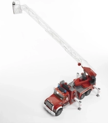 Modelul impresionează prin funcții bine gândite: cabina deschizabilă, oglinzi exterioare rabatabile, parbriz din policarbonat rezistent și posibilitatea de a vedea motorul sub capotă. Anvelopele moi profilate fac față oricărui teren, iar coșul scării este echipat cu suport pentru furtun cu înfășurare printr-o manivelă laterală. Compatibilitatea cu figurinele Bworld extinde opțiunile de joc.