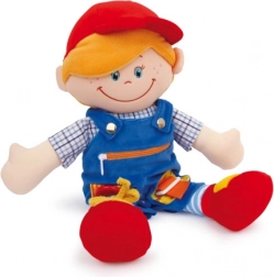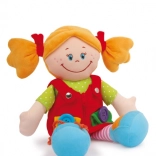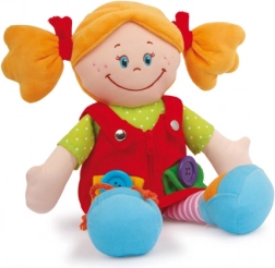 Culorile vii, materialul plăcut și detaliile interactive susțin percepțiile tactile și concentrarea. Copiii își exersează prinderea prin manevrarea diferitelor elemente de pe hăinuțe.
