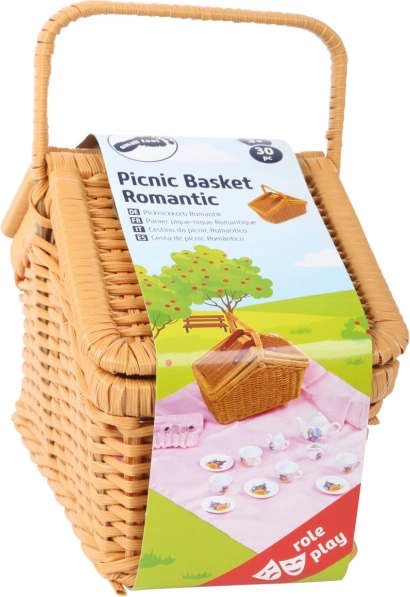 Coșul de picnic cu accente romantice, echipat pentru patru „oaspeți”, oferă copiilor o experiență realistă a servirii în aer liber. În coș găsiți farfurii, cești cu farfurioare, tacâmuri și un ceainic pentru cafea/ceai, zaharniță și laptiere. Datorită execuției robuste din răchită sintetică și organizării practice, totul este depozitat în siguranță și pregătit pentru ieșiri în parc sau în grădină.