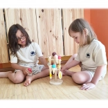 Standul este ușor de transportat datorită bilei robuste de pe vârf și este foarte durabil datorită utilizării lemnului masiv și placajului puternic. Designul său va îmbogăți orice cameră de copil și este un accesoriu potrivit pentru joaca acasă sau în combinație cu alte jucării.