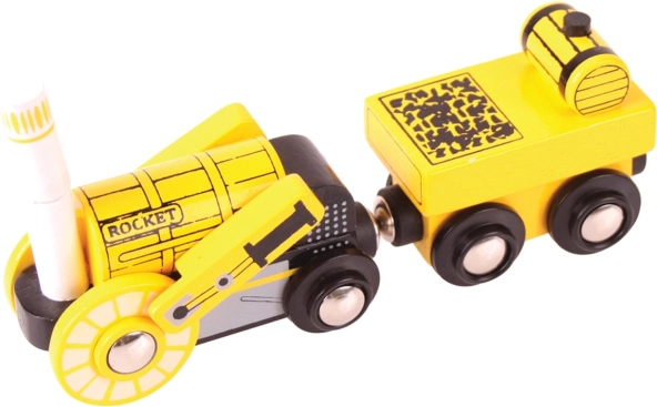 Descoperiți farmecul epocii de aur a căilor ferate cu replica din lemn a locomotivei Rocket de la Bigjigs Rail. Acest model frumos este realizat din materiale naturale de calitate și sustenabile, asigurându-i o durată lungă de viață și rezistență la uzură.
