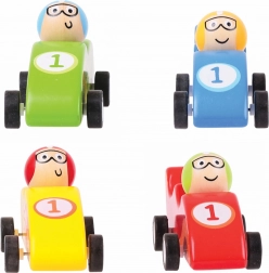 Mașinuțele de curse din lemn, viu colorate, sunt o alegere excelentă pentru micii pasionați de automobile, oferind joacă distractivă cu mecanism de întindere. Construcția robustă garantează siguranță și durabilitate.