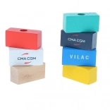 Setul conține 35 de elemente din lemn rezistente, în culori și mărimi diferite, care stimulează imaginația și motricitatea fină.