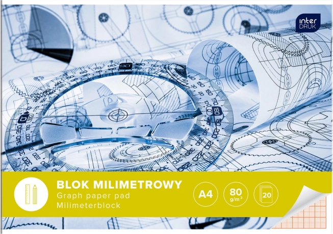 Practic, blocul de hârtie milimetrică în format A4 de la INTERDRUK este ideal pentru desene tehnice, diagrame și grafice. Grila milimetrică fină permite lucru precis, gramajul de 80 g/m² asigură rezistență, iar cele 20 de foi cu legare lipită solidă și spate din carton gros oferă un suport stabil chiar și fără masă. Coperta din hârtie cretată vine în diverse designuri livrate aleatoriu.