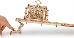Această telecabină realistă de la UGEARS îi va încânta pe iubitorii de modele, mecanică și decorațiuni inteligente. Construcția deschisă, fără carcasă, permite observarea funcționării roților dințate și înțelegerea principiilor forței, transmisiilor și pantei. Înclinarea traseului se reglează ușor cu pârghii la capete, astfel încât poți experimenta diverse scenarii de deplasare.
