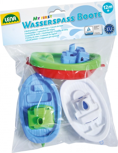 Trei bărcuțe colorate plutesc și pot fi folosite în cadă, piscină sau pe uscat. Forma simplă și culorile vii invită la joacă.