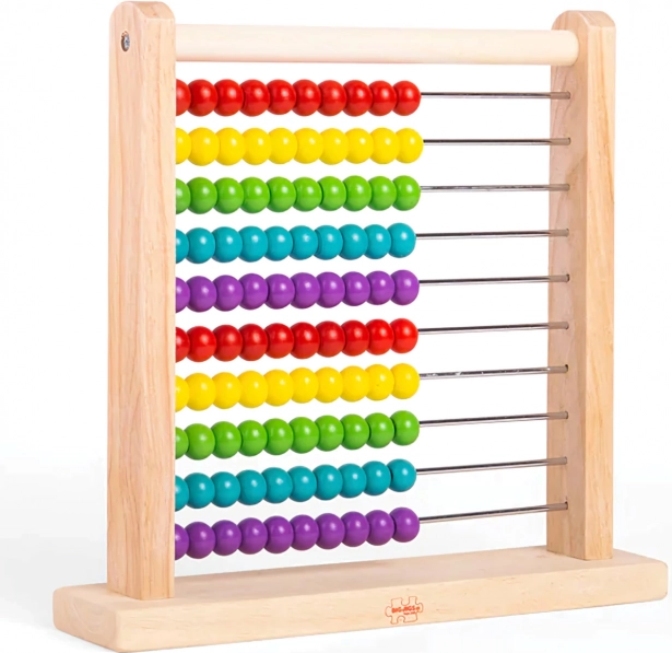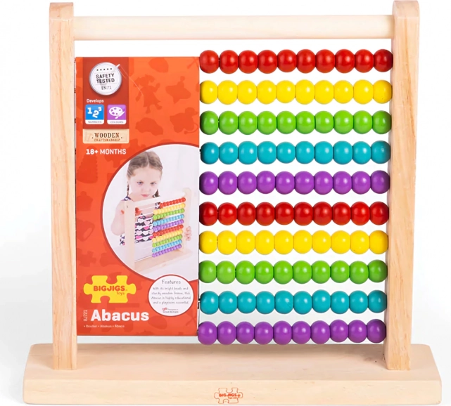 Acest abac este ideal pentru copiii de la 18 luni în sus, ajutând la învățarea aritmeticii simple și dezvoltarea abilităților motorii fine.