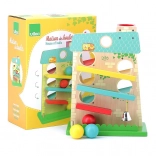 Căsuța în cascadă din lemn VILAC îi va încânta pe cei mici cu cursa distractivă a bilelor și designul atrăgător. Oferă 3 rampe pe ambele părți, pe care bilele din lemn se rostogolesc de sus în jos, iar la sosirea la final sună un clopoțel metalic. Jucăria în culori pastelate dezvoltă îndemânarea și gândirea logică, oferind ore întregi de joacă plină de bucurie.