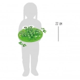 Planșa colorată din lemn în formă de broscuță, cu flori și gângănii, motivează la joacă și stimulează imaginația. Datorită dispunerii clare a orificiilor, copiii se descurcă ușor.
