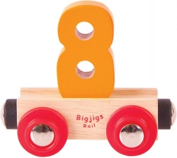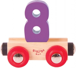 Acest vagon cu numărul 8 va îmbogăți orice cale ferată din lemn cu un element distractiv și didactic. Numărul detașabil se poate înlocui ușor cu litere sau alte cifre, astfel încât copiii își pot compune propriile nume, inscripții și numere. Datorită cuplelor magnetice, vagonul se conectează fără probleme la locomotivele și vagoanele sistemelor din lemn îndrăgite.