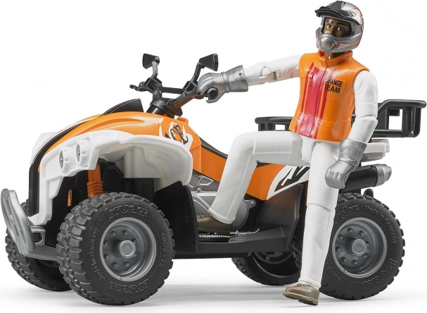 Setul BRUDER bworld aduce un ATV realist cu călăreț pentru joacă creativă și plină de acțiune. Modelul reproduce fidel vehiculul real, inclusiv punțile față și spate suspendate, anvelopele detaliate și construcția robustă pentru condus pe „terenul” camerei copiilor.