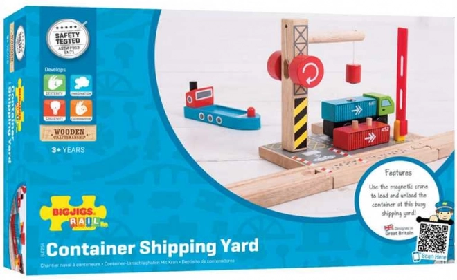 Descoperiți un terminal din lemn grozav cu o macara magnetică funcțională, care le aduce copiilor mai aproape lumea porturilor și a căilor ferate. Setul include un camion de marfă din lemn cu containere și o macara robustă pentru încărcare și descărcare ușoară. Întregul ansamblu este sigur, durabil și invită la joc deschis.