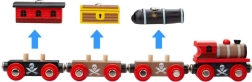 Tren pirat de la Bigjigs Rail este alegerea ideală pentru micii aventurieri. Acest set conține o locomotivă și trei vagoane detaliate cu cuplaje magnetice clasice. Compatibil cu toate sistemele feroviare din lemn.